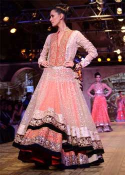 According to ZeeNews India, Bollywood`s favorite designer, Manish Malhotra, displayed his take on traditional and modern Indian bridal wear at the recent PCJ Delhi Couture Week. Celebrities like Katrina Kaif and Vidyut Jamwal showcased Malhotra’s designs.