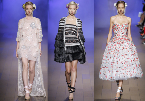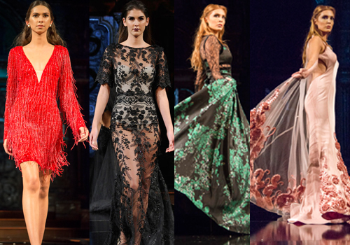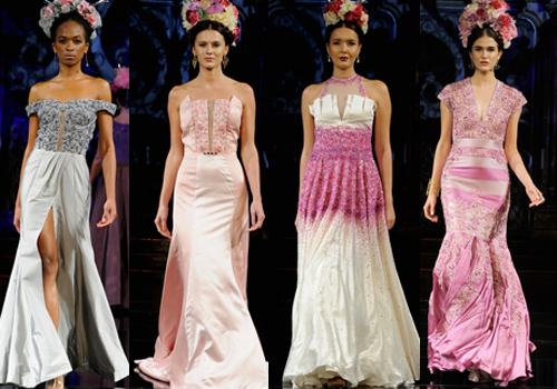 Couture Fashion Week favorite, Sushma Patel combined traditional Indian Sari’s with fabulous bridal wear. The fierce and bright colors and beadwork made the garments sparkle. This collection shows Patel’s design range and draping skills.