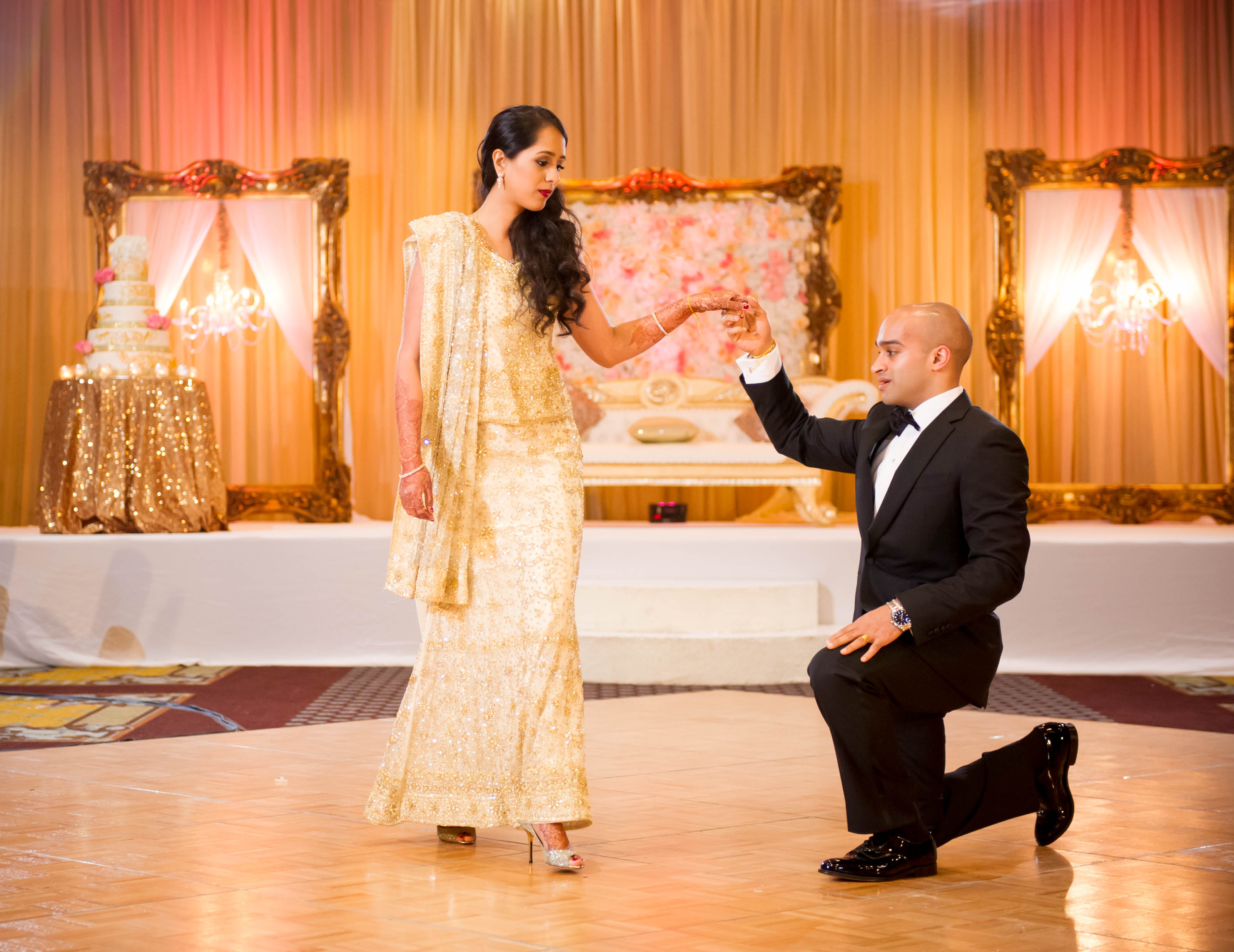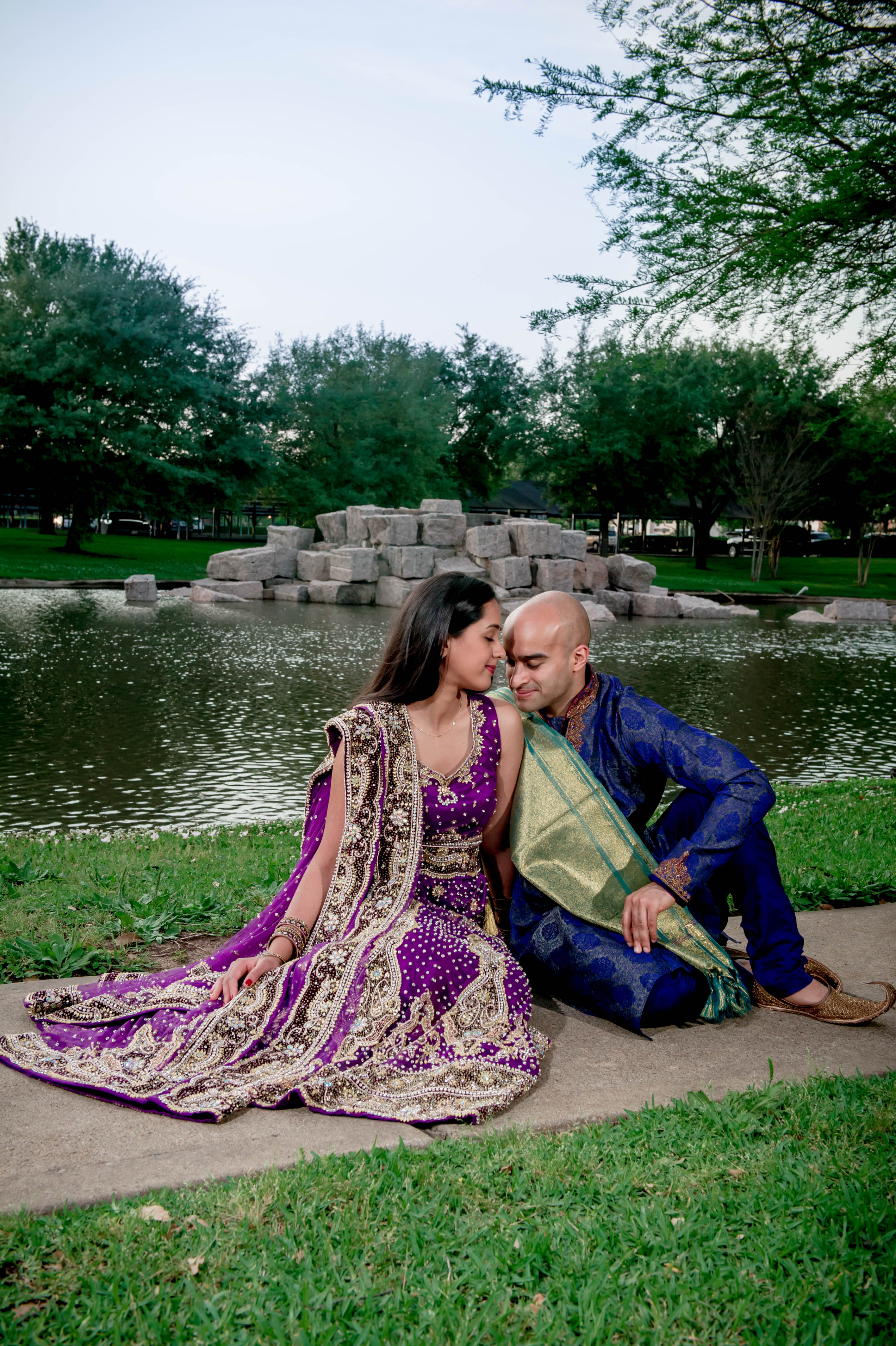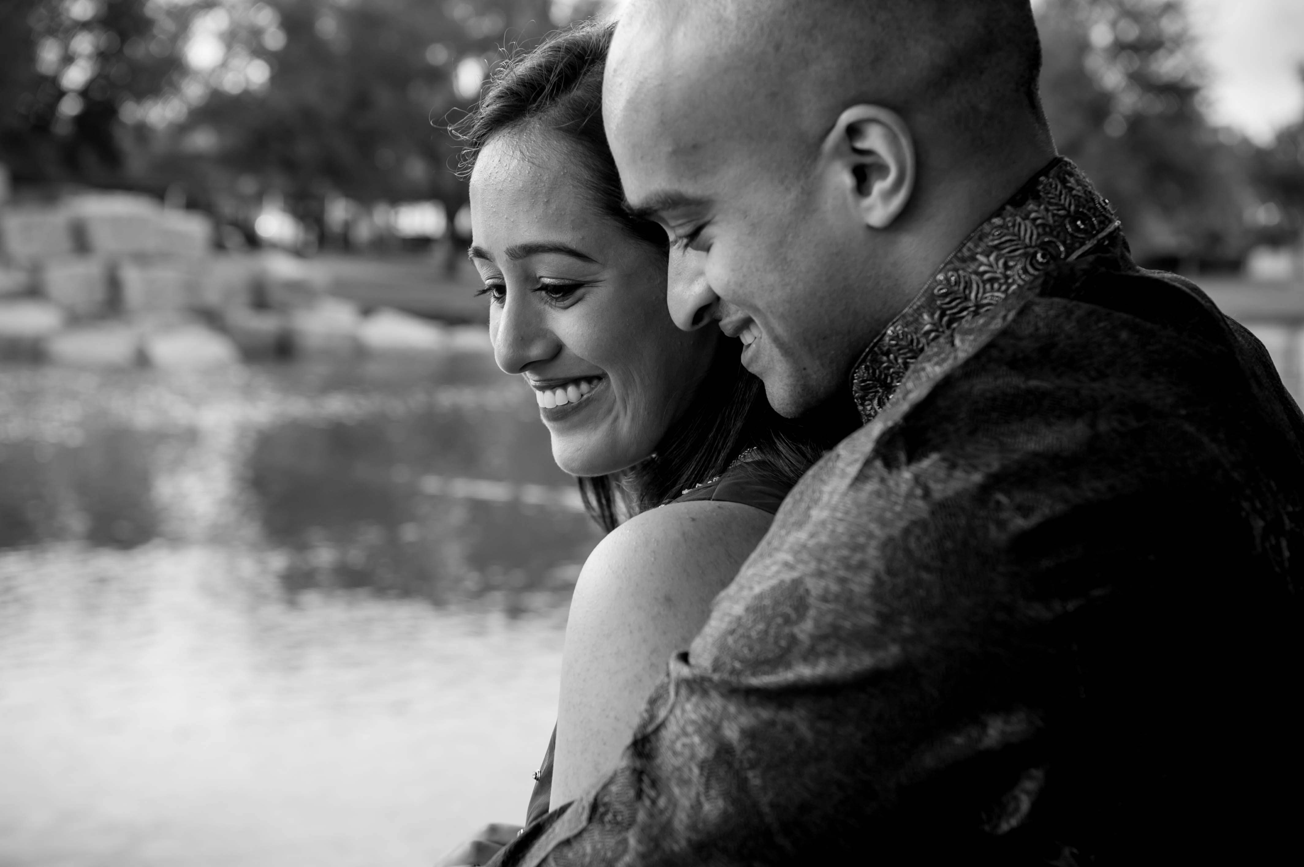 Meena and Raghu met in high school and were good friends. They started dating each other during college, when Raghu came home (to Houston, Texas) for summer break. Raghu had initially hoped to propose at a national park when visiting Meena, who was in medical school. Unfortunately, the government had shut down at that time, rendering the parks closed. So, he opted to propose by reading Meena a letter he had written for her earlier in their long-distance relationship.