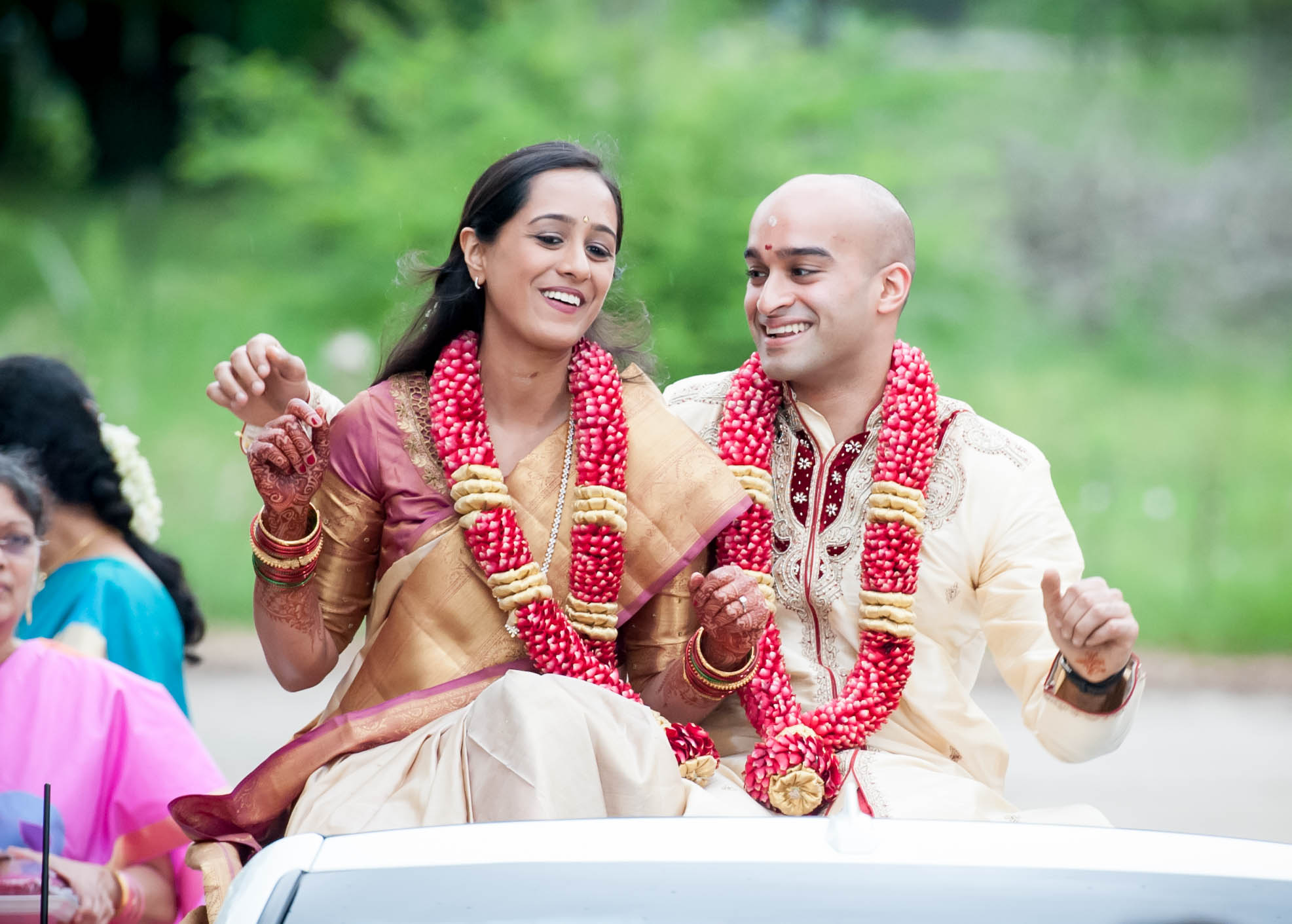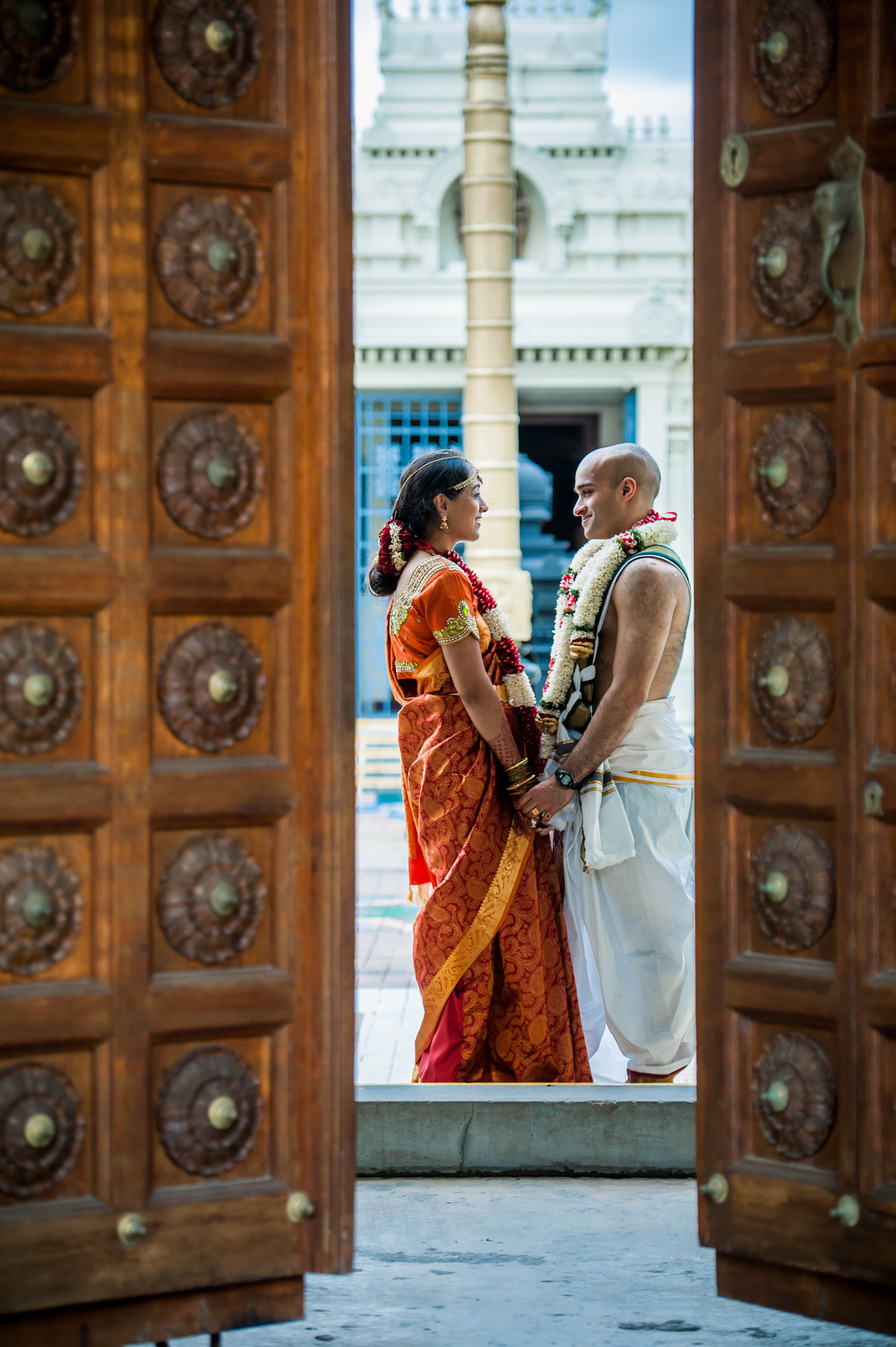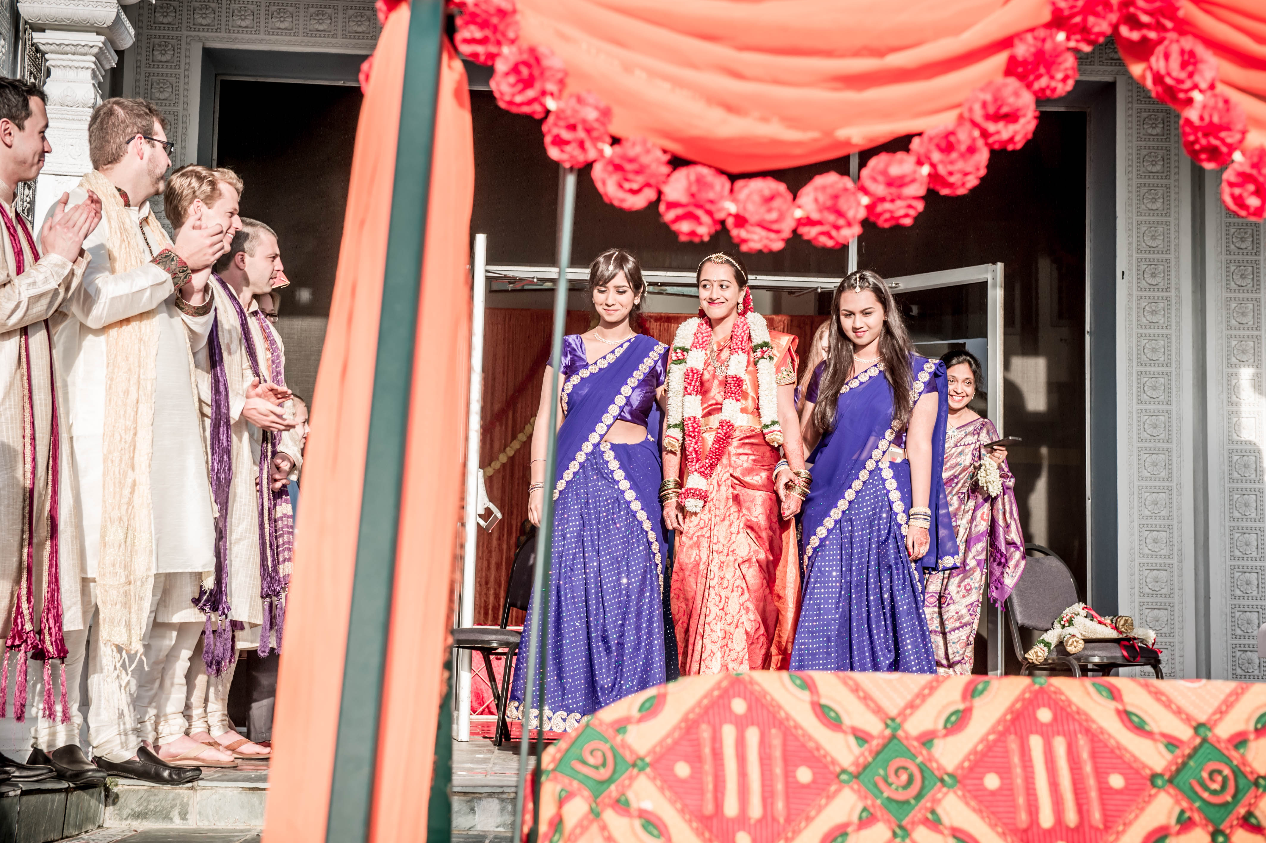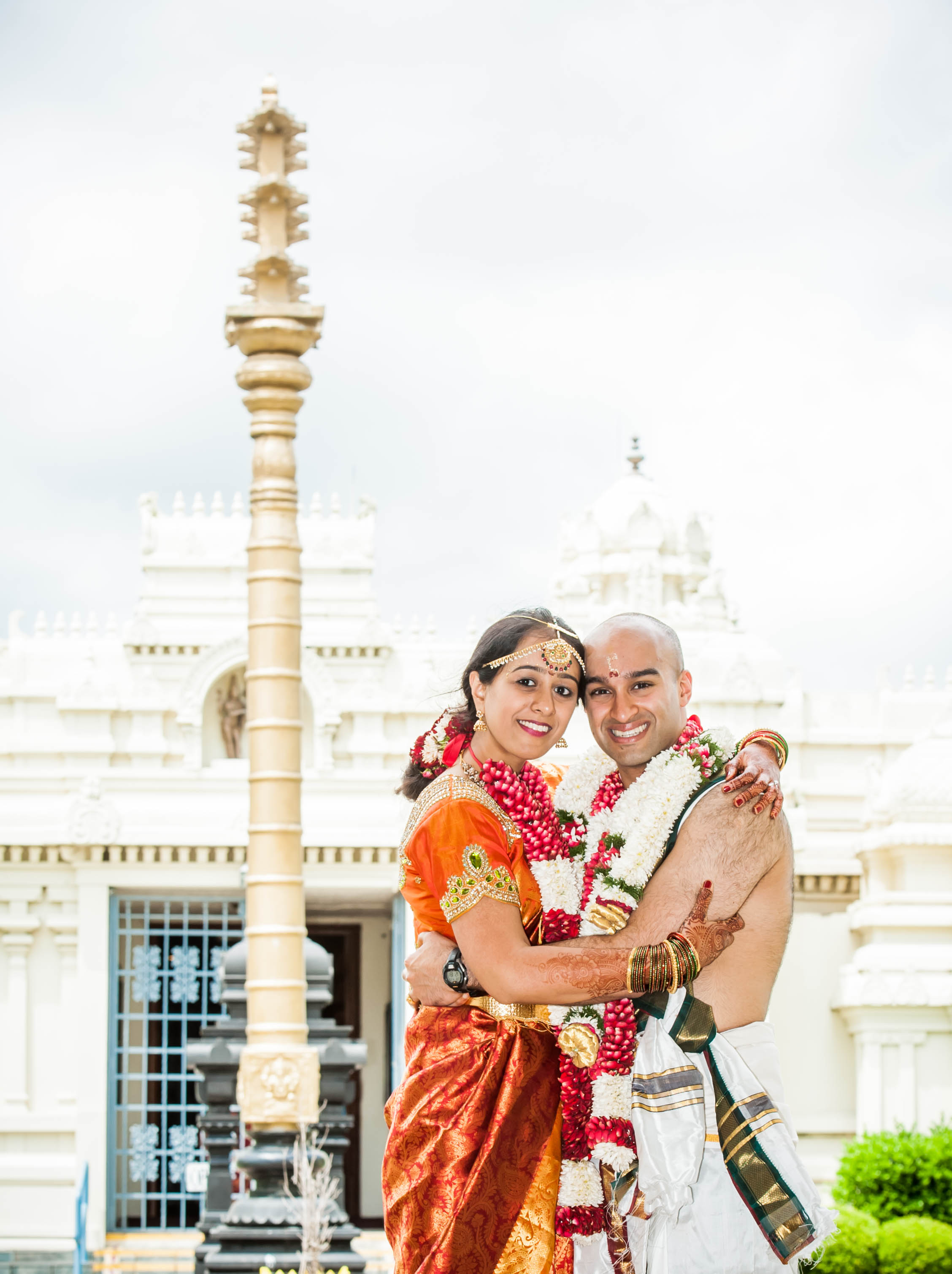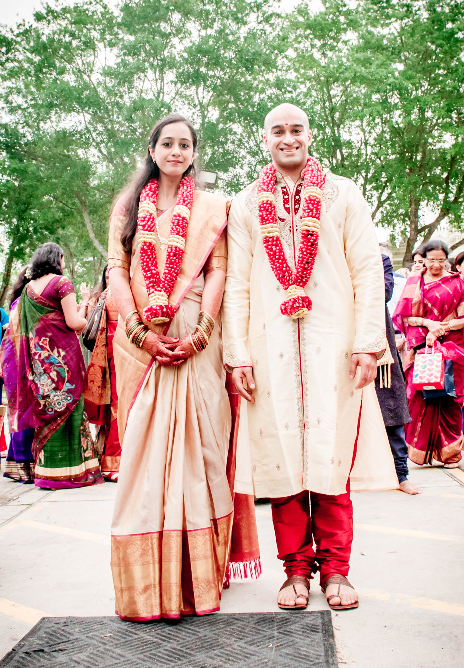 The couple currently resides in San Francisco, CA, where Raghu works in the tech industry and Meena is working on second year of medical residency. They had a traditional Tamil Iyer (subsect of South Indian Brahmin-Hindu) wedding, with added Telugu traditions and an Indian-American twist.
