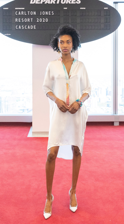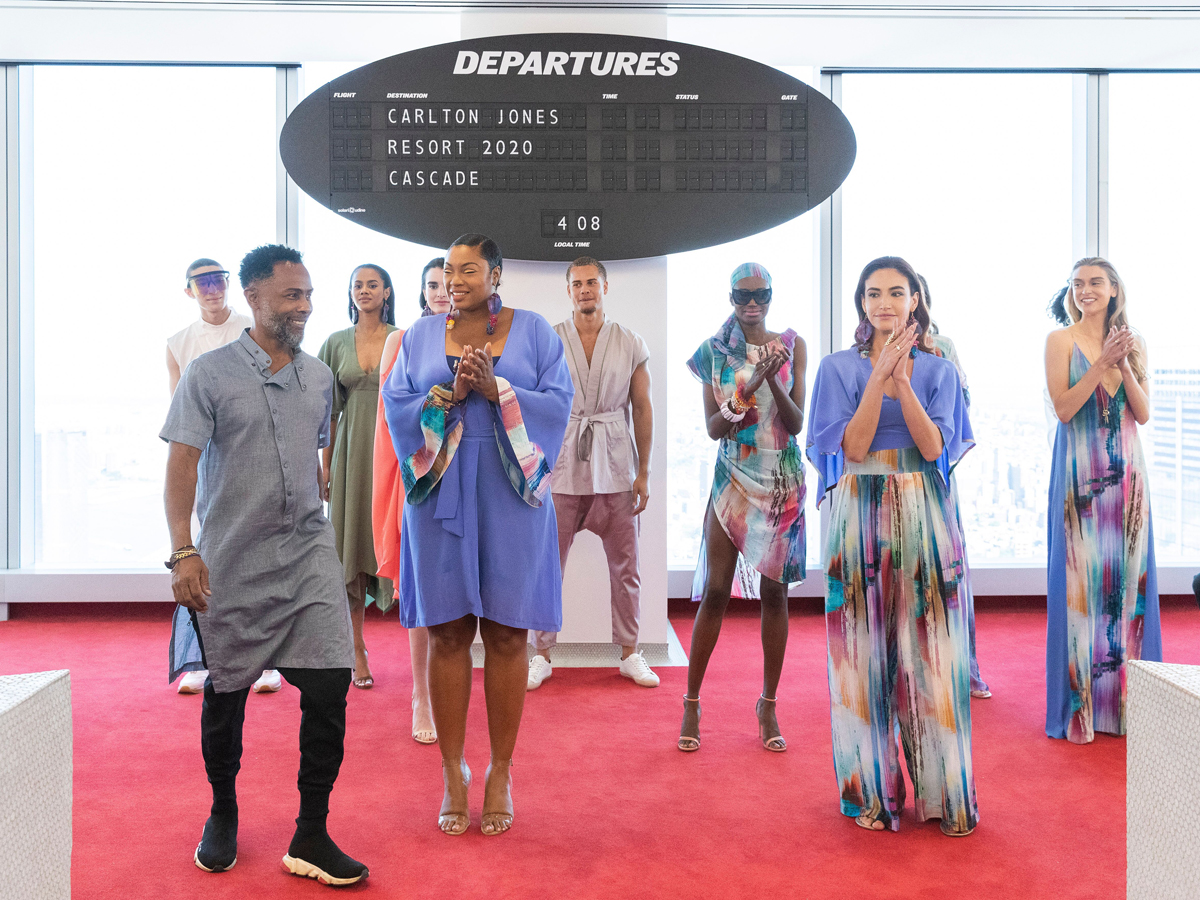Celebrity stylist and evolving designer Carlton Jones premiered his resort womens wear collection, Cascade Resort 2020, on June 4, 2019, at the swanky, new TWA Lounge at One World Trade Center. He elevated his game once again by taking us in the skies 86 floors above city grounds in the heart of lower Manhattan.